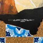 Black and bege cork. Street Posters. Tile. Acrylic. Spray. Markers.